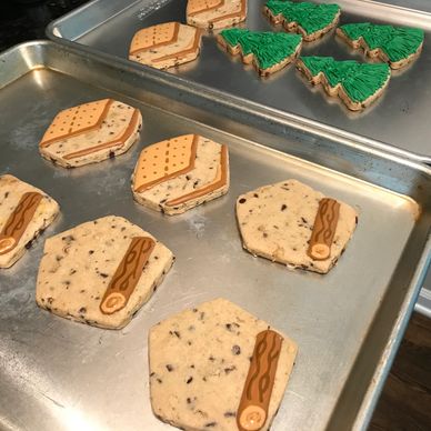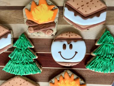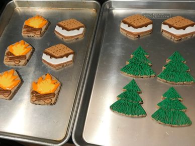 Most people have baked cookies at one point or another (at least chocolate chip cookies!), but many may not realize how many steps and how much attention and care go into making beautiful decorated sugar cookies. I want to give you a sneak peek, behind the scenes tour of the "how" behind these special cookie creations. These are s’mores flavored cookies with a campfire theme.