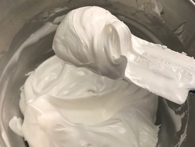 Using meringue powder, flavorings, corn syrup (for shine and a soft bite), and a bunch of powdered sugar, make the royal icing. Mix until stiff peaks so the icing will hold its shape, but be sure not to overmix or the icing will dry hard and brittle.